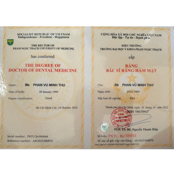 - Tốt nghiệp Bác sĩ Răng Hàm Mặt (Đại học Y Phạm Ngọc Thạch 2023)