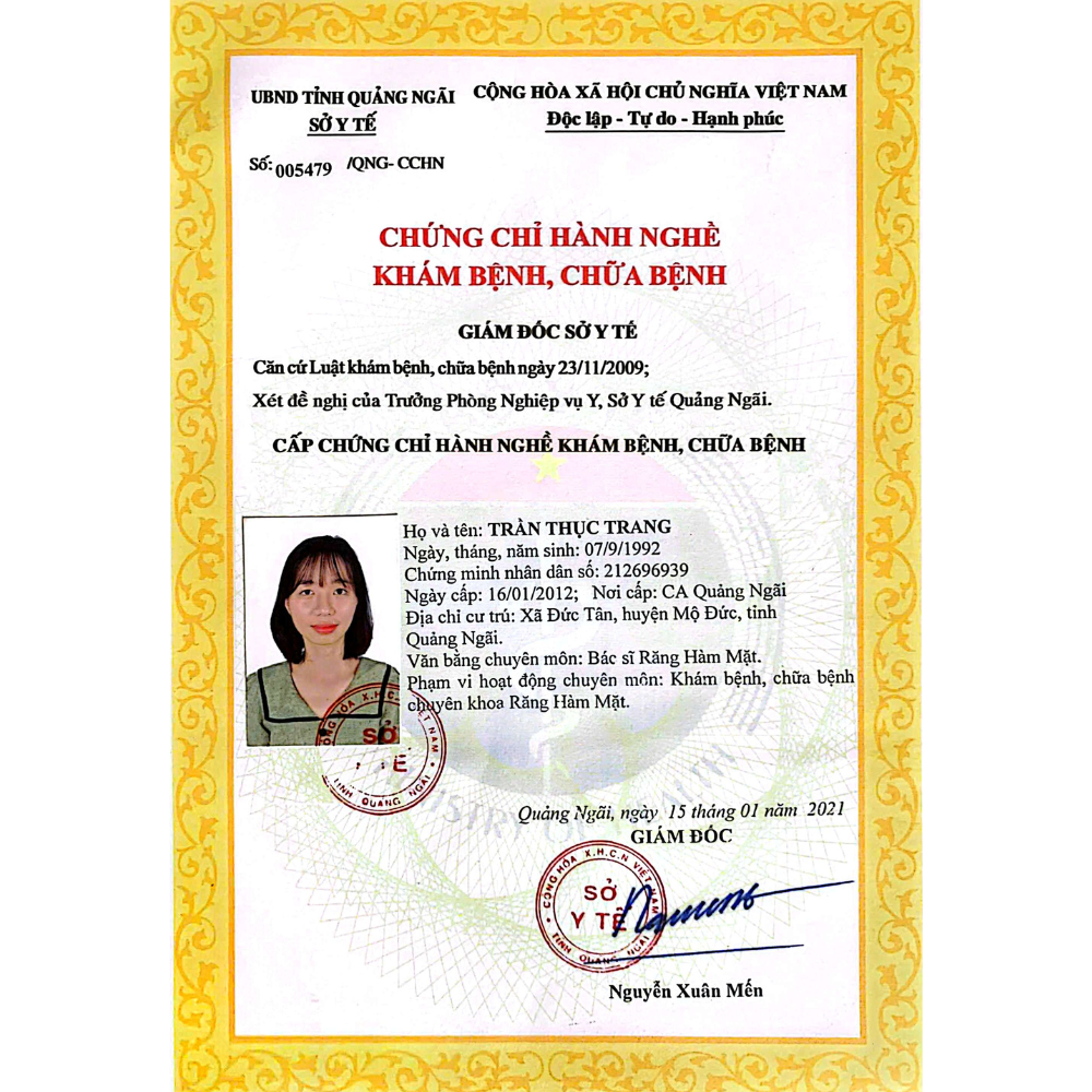 Bác sĩ Trần Thục Trang là một chuyên gia Chỉnh nha hàng đầu, được đào tạo chuyên sâu và liên tục cập nhật các kỹ thuật điều trị tiên tiến nhất từ trong và ngoài nước. Hồ sơ học thuật và chứng chỉ chuyên môn của Bác sĩ Trang là minh chứng rõ ràng nhất cho sự uy tín, kinh nghiệm và cam kết mang lại nụ cười khỏe đẹp, hoàn hảo cho mọi lứa tuổi.
