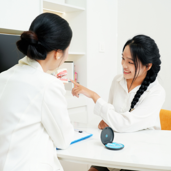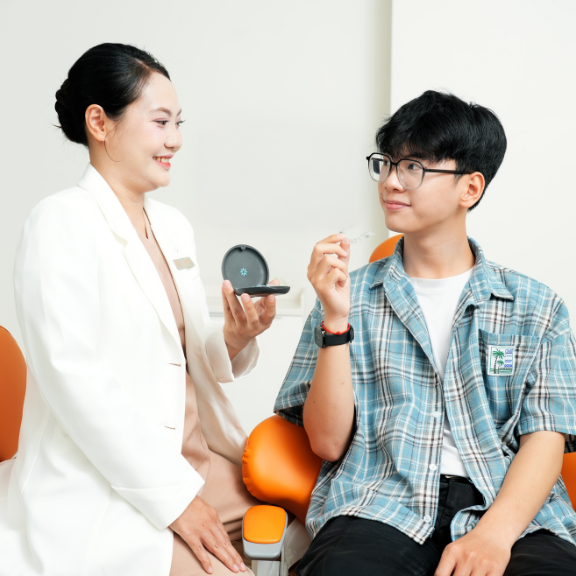 Thấu hiểu tâm lý dễ mặc cảm về ngoại hình của các bạn tuổi teen, các bác sĩ tại Nha khoa Orion luôn tiếp cận với thái độ nhẹ nhàng, ân cần để quá trình niềng răng trở nên vui vẻ, thoải mái nhất.